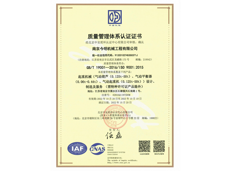 南京今明機械工程有限公司成立于一九九三年,歷經二十多年磨練,沉淀了一批跟隨企業共同成長,技藝超凡、資深的高級工程師、技師、以及熟練的技術工人。企業的歷練和人才的智慧,鑄造出企業的核心競爭力。十年磨一劍。本著技術興業,多年來,企業致力于氣動起重產品的研發(fā)與生產。在國內氣動起重裝備領域具有良好的聲譽。并積極地與國家起重運輸機械質量監(jiān)督檢驗中心、北京起重運輸機械設計研究院、江蘇省科技廳、南航等高校和科研單位緊密合作,與國外知名企業建立戰(zhàn)略合作伙伴關系,廣泛吸收國內外新技術經驗,力求趕超國際先進氣動起重裝備的技術,打造國內氣動起重裝備行業新軍。目前,企業已開發(fā)五大系列近百個品種的產品,覆蓋了化工、汽車、機械、冶金、礦山等二十多個行業,并在全國三十多個省份擁有客戶。企業堅持用心做好每個環(huán)節(jié),精心打造讓客戶滿意的產品,力求...瀏覽更多 +